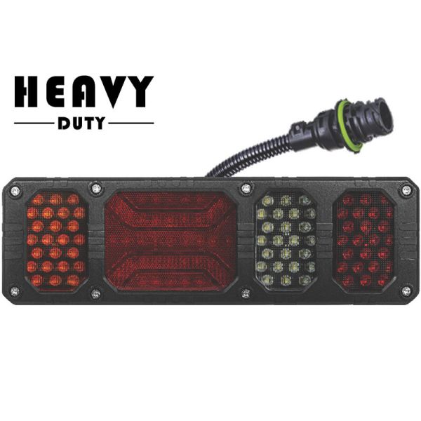 Feu arrière combiné à LED robuste 24 V avec câble et connecteur 7 broches et module 139 LED. Fonction complète : position, frein, clignotant, marche arrière, antibrouillard et réflecteur.