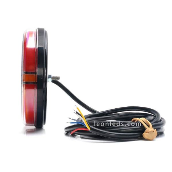 Feu Arrière Rond LED W193DD valable pour les tensions 12 Volt et 24 Volt avec 5 fonctions, Position, Clignotant Dynamique, Recul, Antibrouillard et Feu Stop intelligent (Voir Vidéo) à installer en surface à l'aide de deux vis, le veilleuse a un diamètre de 14,2 cm. Ce pilote LED a une main, sélectionnez le bon côté.
