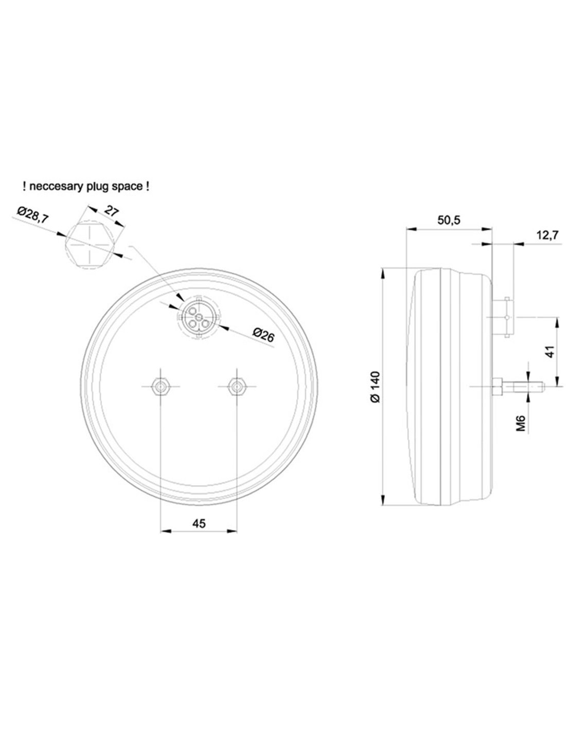 Le principal atout concurrentiel du modèle FT-110 Bajonet réside dans son système de connexion. La prise Bajonet à 5 broches élimine le besoin d'épissure manuelle, réduisant considérablement le temps de montage en atelier et les risques de corrosion des câbles. Elle est fixée par deux vis M6 espacées de 45 mm, standard pour ce type d'indicateur rond de 140 mm de diamètre. Sa conception universelle permet d'utiliser la même référence pour les côtés gauche et droit du véhicule.