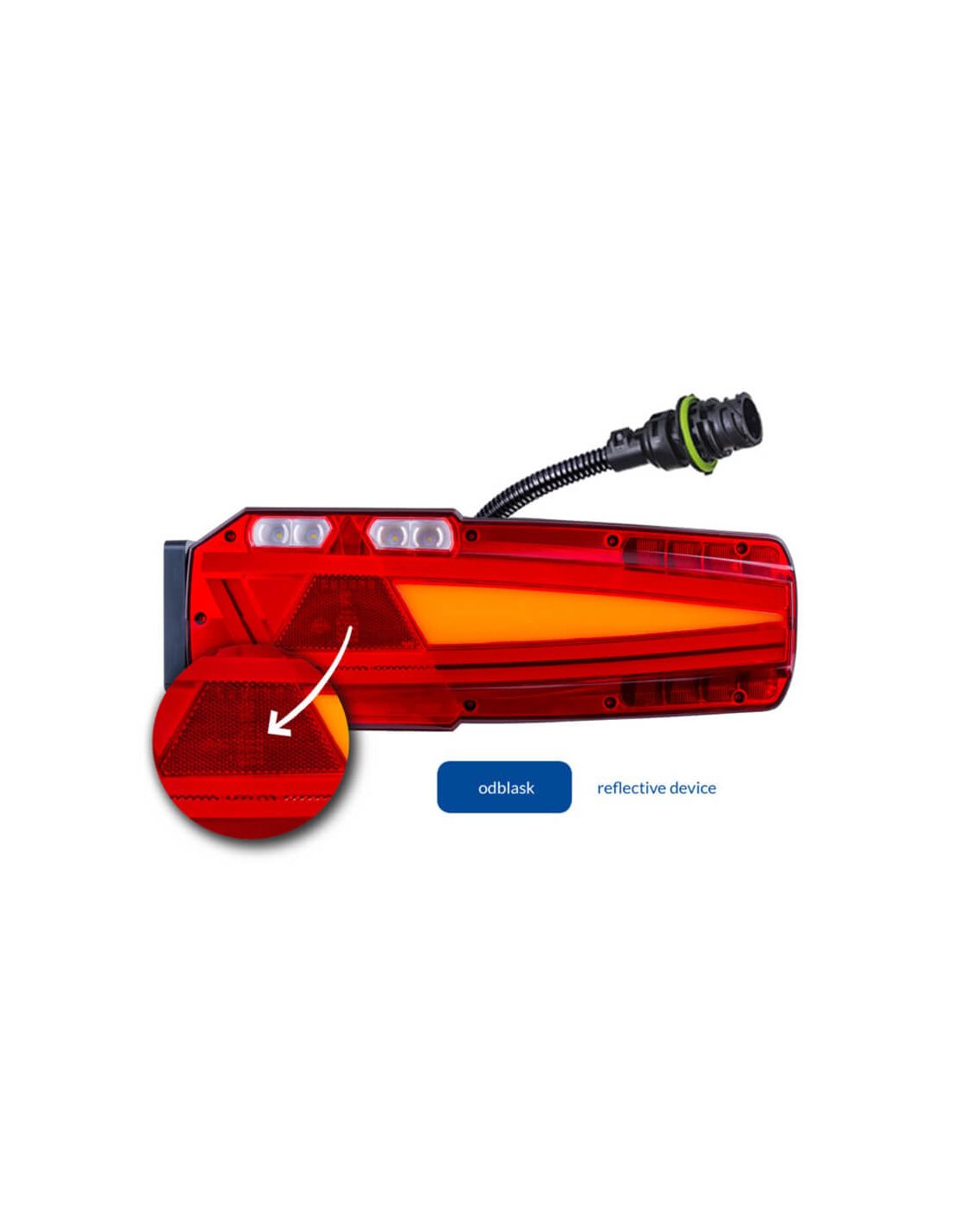 Feu arrière LED Mavic avec triangle pour installation à l'arrière des remorques ou des plateaux. Ce modèle est compatible avec les installations 12 et 24 V et comprend un câble d'installation de 1,5 mètre. Il offre 7 fonctions : feu de position effet néon, clignotant effet néon, feu antibrouillard, feu de recul, feu stop effet néon et feu de gabarit latéral avec catadioptre.