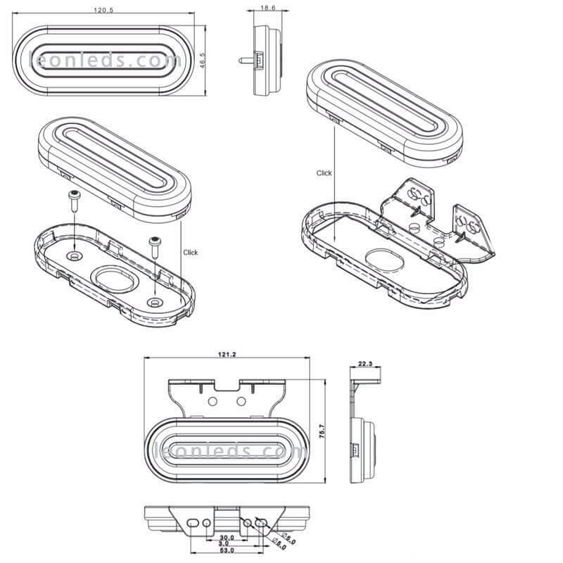 Sur l'une des photos, vous pouvez voir les mesures du Pilot et il est installé sur la surface à l'aide de 2 vis (non incluses) ou au moyen du support suspendu, il comprend les 2 supports. Ce modèle d' éclairage LED de dégagement offre un effet néon très frappant et visuel et est également réfléchissant, idéal pour donner une touche différente à la remorque ou au camion et gagner en visibilité puisque vous serez vu à l'avance par les autres conducteurs sur la route.