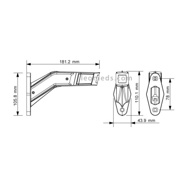Feu de Gabarit LED Homologué pour remorques , plates-formes, baignoires, réservoirs, valable pour 12V et 24V avec 3 fonctions, feu latéral orange, feu arrière rouge et feu avant blanc.