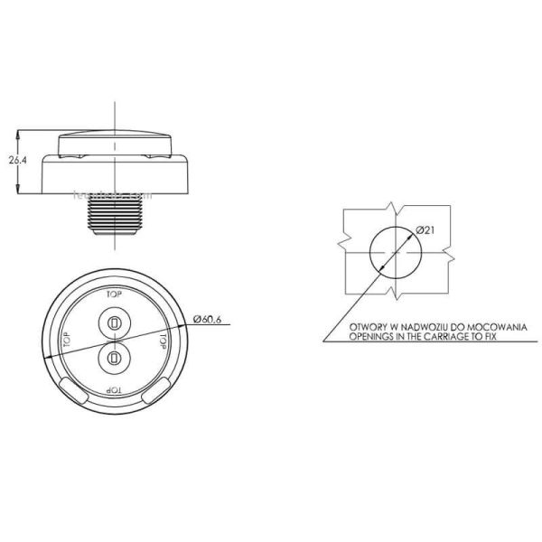 Dimensions du support arrière : ↗ 2,64Cm | Ø 6,06 cm.