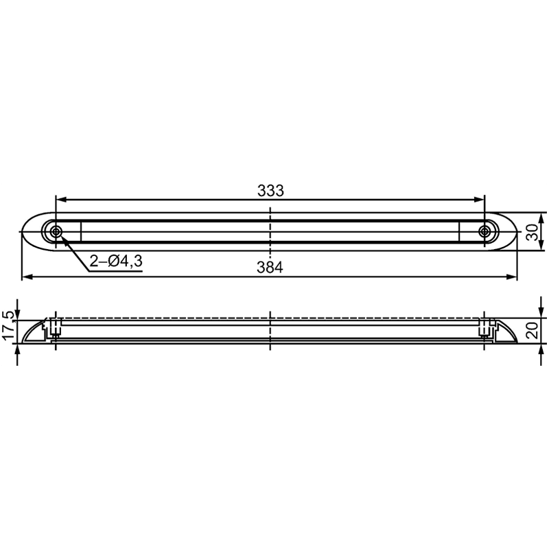 Barre LED de frein arrière homologuée pour les tensions 12V, totalement étanche et submersible, elle s'installe en surface et comprend un câble pour sa connexion.