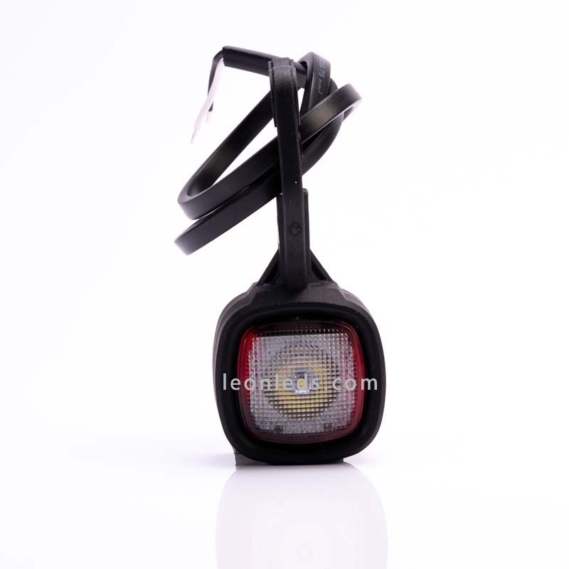 Feu LED latéral Fristom FT-141 avec lumière LED blanche d'un côté et rouge de l'autre côté, valable pour 12 Volts et 24 Volts à installer suspendu, idéal pour installer sur les côtés d'une remorque ou d'un camion, comprend 0,5 mètre de câble pour son installation et est totalement étanche et submersible avec un degré d'étanchéité IP68.
