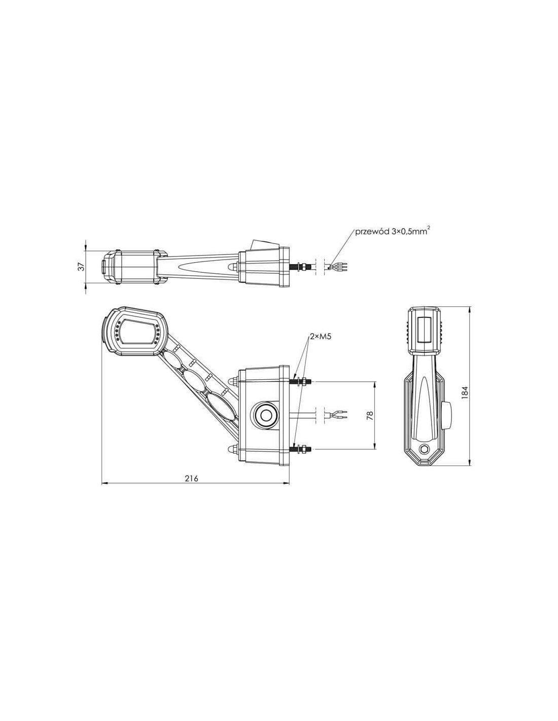 Feu d'encombrement à LED long avec capteur de recul à 3 fonctions avec feu arrière rouge, feu avant blanc et feu de position orange, les feux avant et arrière illuminent l'hologramme de la marque Horpol, il peut être installé en 12 Volts et en 24 Volts et dispose de 0,5 mètre câble pour l'installation.