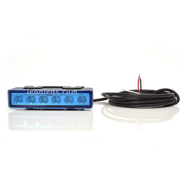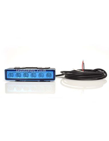 Veilleuse LED stroboscopique avec une tulipe bleue transparente et des LED bleues, valable pour les installations 12V et 24V. Ce pilote peut être installé encastré ou en surface. Pour une installation en surface, il comprend un support que nous devons installer au préalable pour maintenir le pilote.