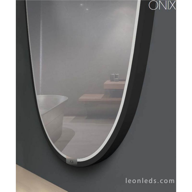 Miroir LED noir de forme ovale, modèle Onix Pour une installation dans la salle de bain, ce miroir de 59 W offre une intensité lumineuse de 3 375 lm, activable via un interrupteur externe (non inclus). Disponible en deux tonalités : lumière chaude (3 000 K) ou lumière naturelle (4 000 K). Vous pouvez sélectionner ces options lors de l'achat de ce miroir LED noir.