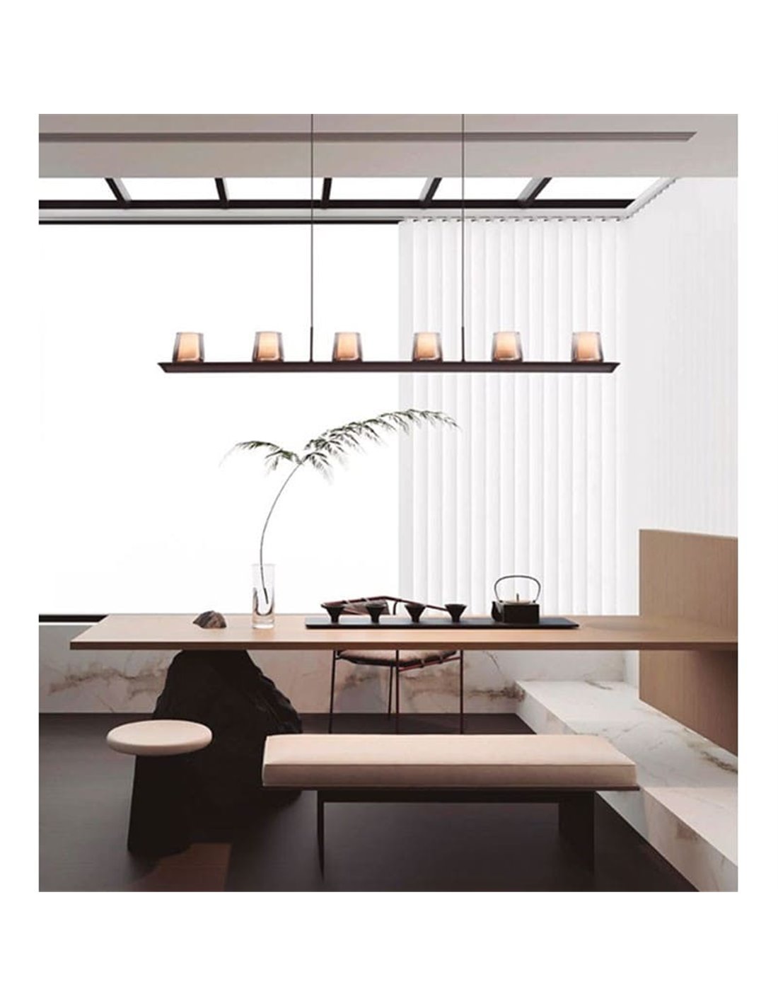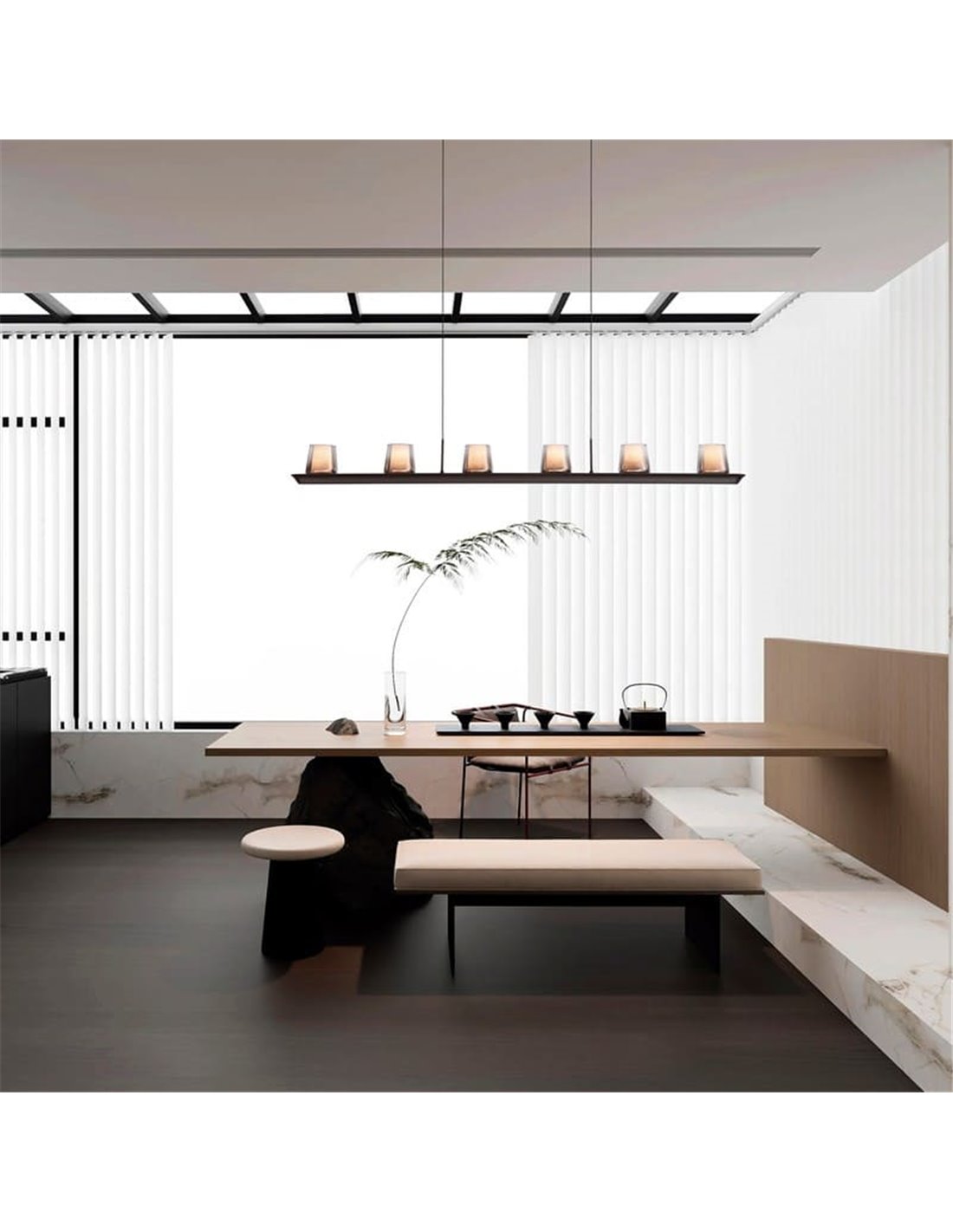 Le modèle 9436 ALABASTER est le plus long de la collection, avec une tige de 1270 mm et six teintes d'albâtre naturel . Son design apporte équilibre visuel, chaleur et un style raffiné, idéal pour les intérieurs contemporains.