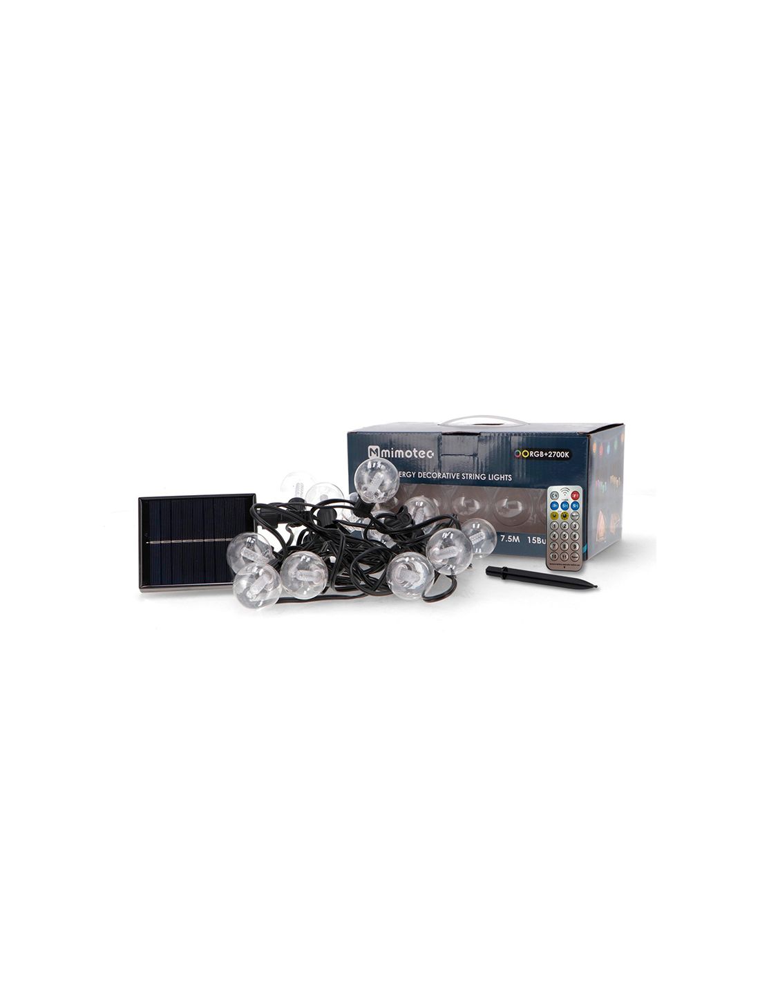 La guirlande lumineuse solaire LED RGBW de 15 ampoules et 7,5 m est parfaite pour transformer n'importe quel espace extérieur en un lieu plein de charme, de lumière et de couleur, que ce soit pour des événements spéciaux ou pour créer une atmosphère chaleureuse chaque soir.