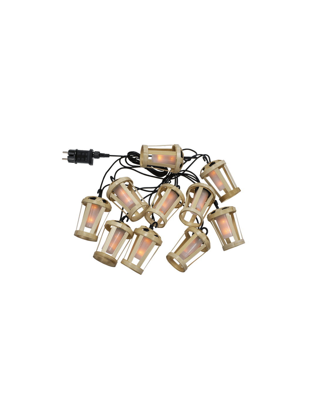 L'autre format est rechargeable et fonctionne par recharge solaire , il dispose également de 10 ampoules avec un ton lumineux effet flamme en 1800k. Les deux modèles ont une protection IP44 contre les éclaboussures, adaptées à une utilisation dans les espaces extérieurs. Profitez d'un éclairage chaleureux et relaxant grâce à son éclairage qui simule le feu et son paravent en bambou tressé. Chacune des lumières a un crochet en haut pour une suspension facile.