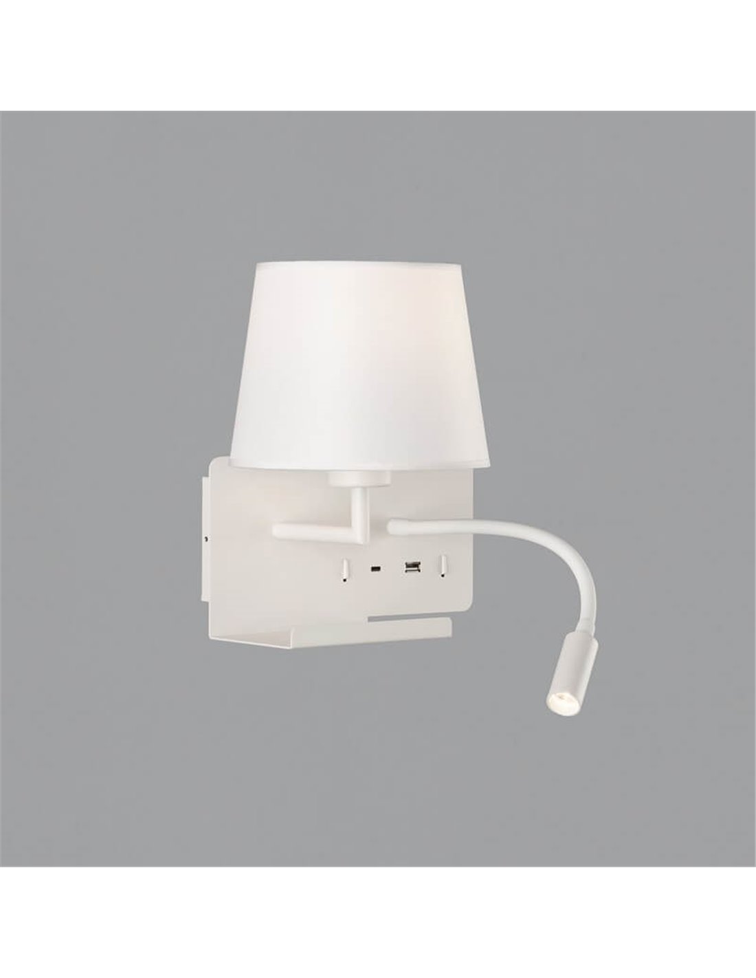 HOLD Applique Chambre Gauche avec deux interrupteurs et base pour téléphone portable, LED orientable, avec USB, avec USB-C, blanc texturé, écran blanc/noir, 3W 3000K 285lm + LED E27 15W