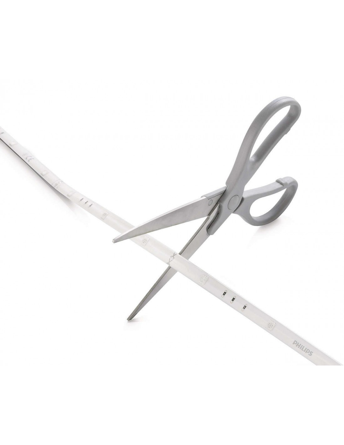 Si la conception de vos LightStrips ne correspond pas exactement à l'utilisation que vous en faites, vous pouvez facilement couper le câble. Les marques de coupe sur le produit indiquent où vous pouvez couper.