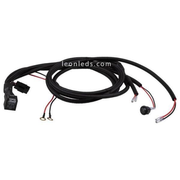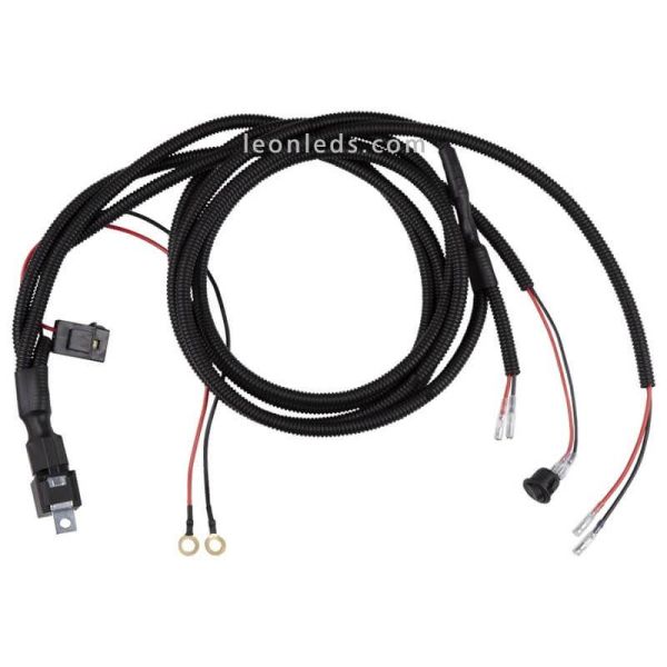 Le kit de câblage double Osram vous permet d'installer 2 barres LED sans aucune installation. Ce câblage comprend un interrupteur, des connecteurs, un relais et un fusible, en plus de les connecter à la batterie, il a également le faston rond qui garantit que nous pouvons effectuer l'installation de manière très simple et rapide, ci-dessous vous pouvez voir les mesures de ce kit câblage :