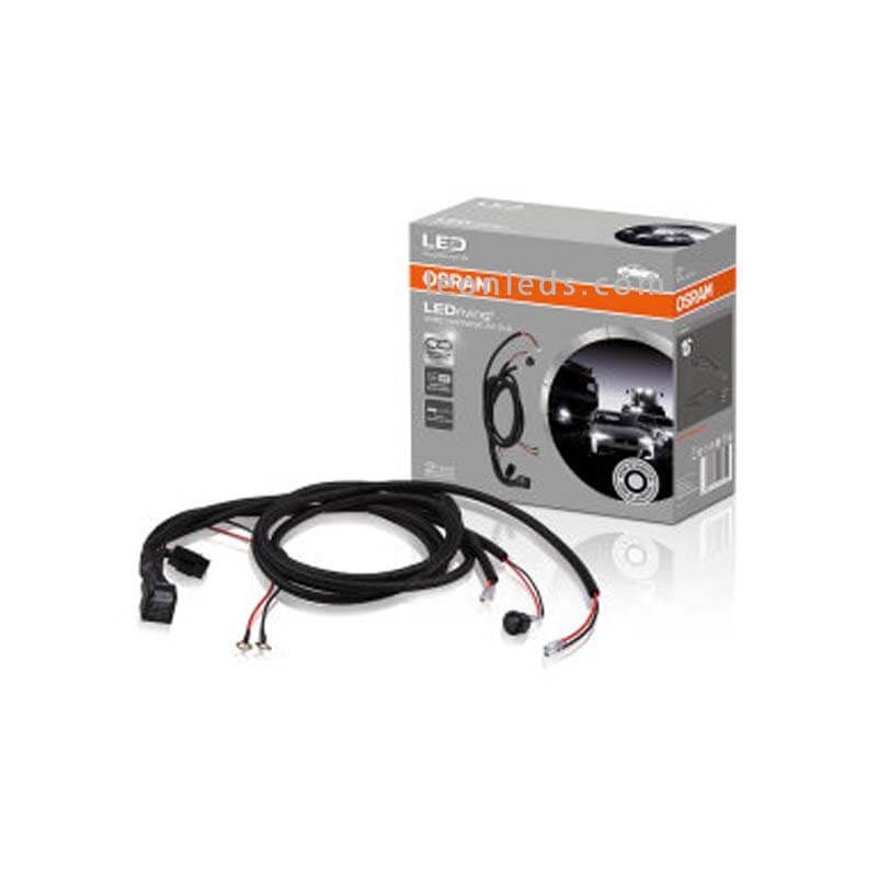 Kit de câblage double pour 2 barres LED, comprend interrupteur, relais et fusible et les dimensions des câbles sont visibles sur l'une des photos, la référence Osram est LEDDL ACC 102, valable pour l'installation de 2 barres LED dans des véhicules 12V.