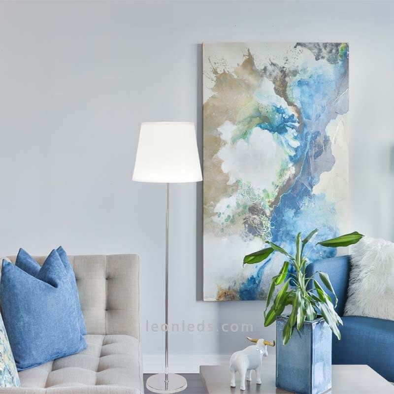 Lampadaire avec écran Blanc de la série Maldivas de Fabrilamp au style très simple et facilement combinable dans n'importe quelle pièce de votre maison.