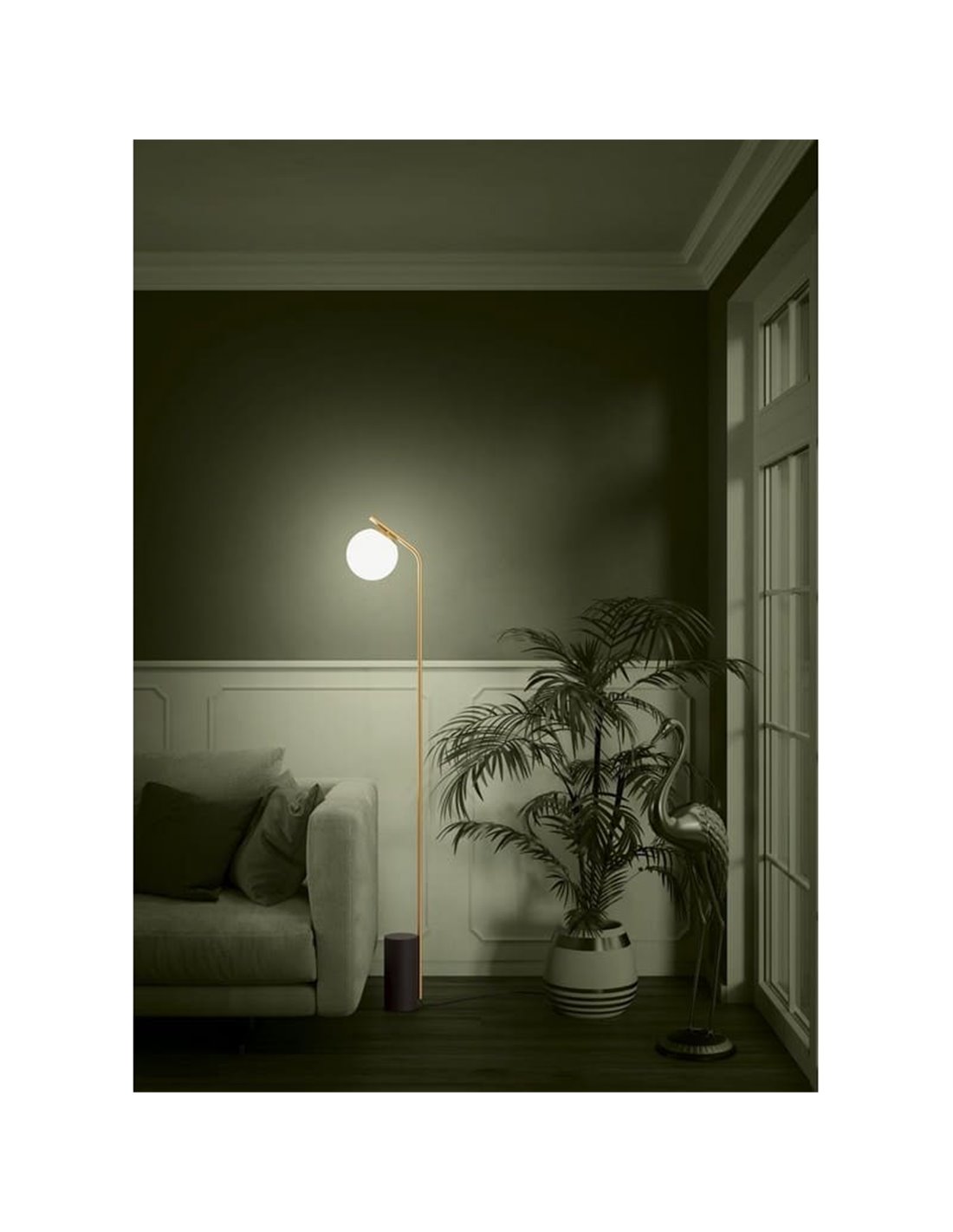 BETULIA est un lampadaire décoratif conçu pour ajouter du style et la légèreté visuelle de l'espace. Sa structure élancée, combinée à Globe en verre opale blanc , génère un éclairage doux et agréable, Parfait pour compléter les espaces de vie et de détente.