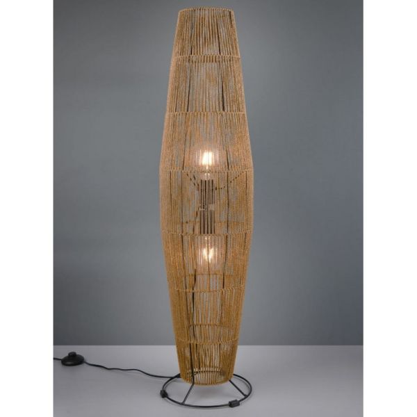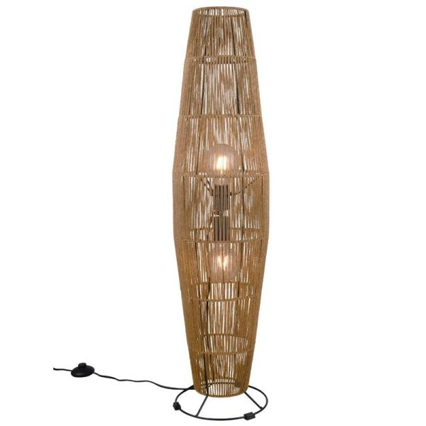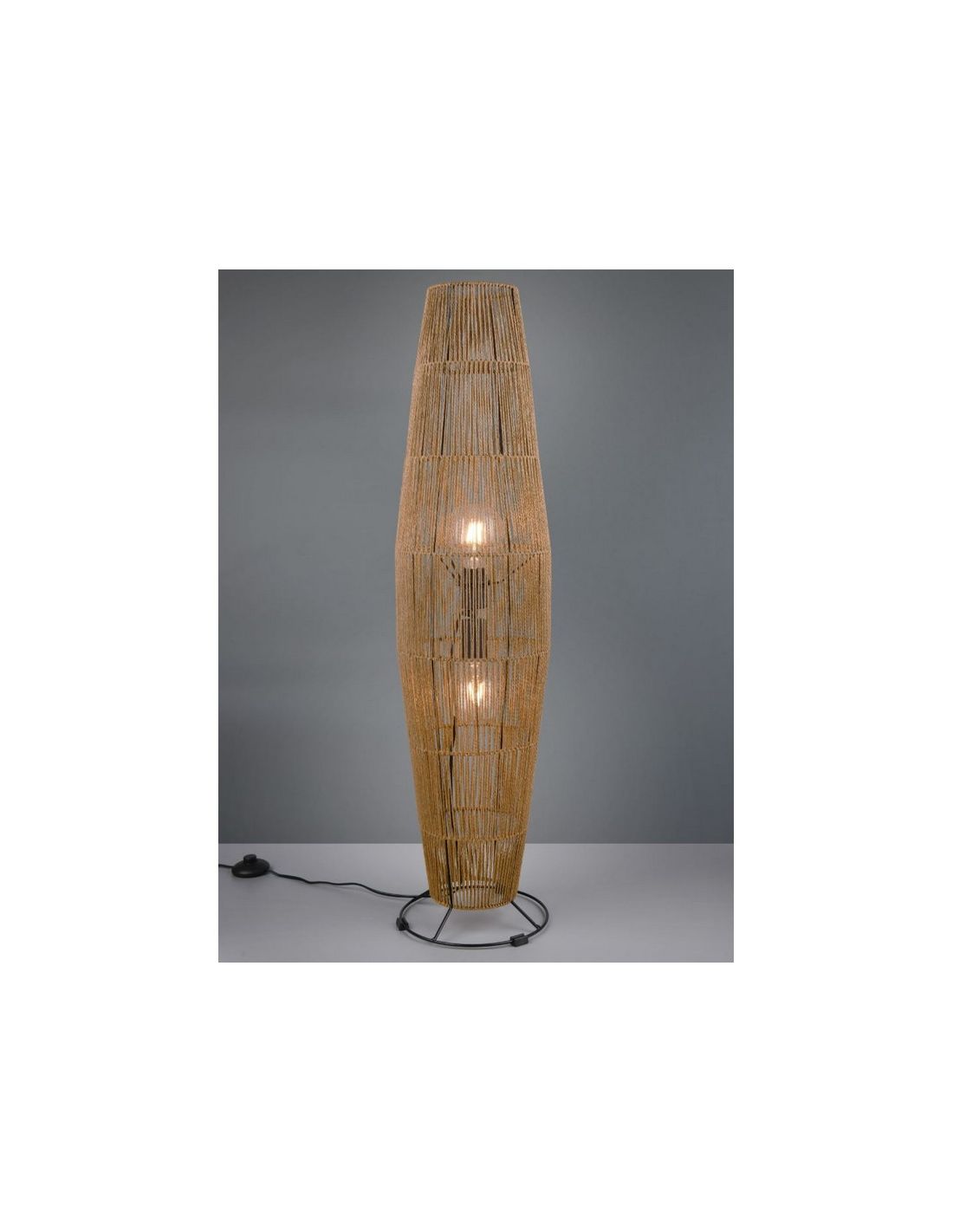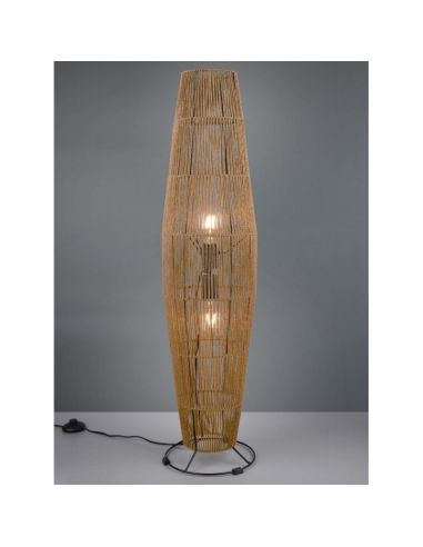 Le lampadaire MIKI en rotin de style bohème allie design naturel et fonctionnalité, idéal pour les environnements détendus. Il a une structure de 103 cm, un interrupteur à pédale et une capacité pour deux ampoules E27 (non incluses).