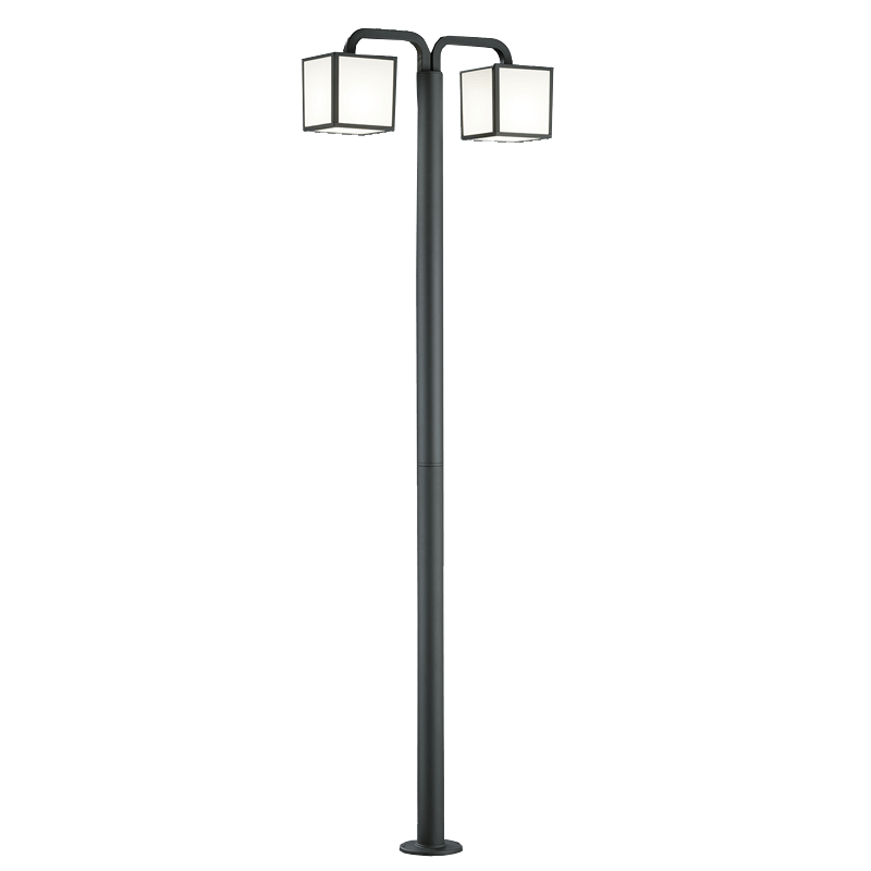 Le mât haut Cubango 2xE27 propose un design qui joue avec l'environnement et ne le surcharge pas mais le stylise plutôt. Sa finition anthracite et sa fabrication en fonte d'aluminium lui permettent de s'intégrer dans n'importe quel espace extérieur (jardin, terrasse, entrées, etc.). Les mensurations de cette perche vous surprendront : une largeur de 61 cm, une hauteur de 200 cm, une profondeur de 18 cm et un poids de 2,41 kg.