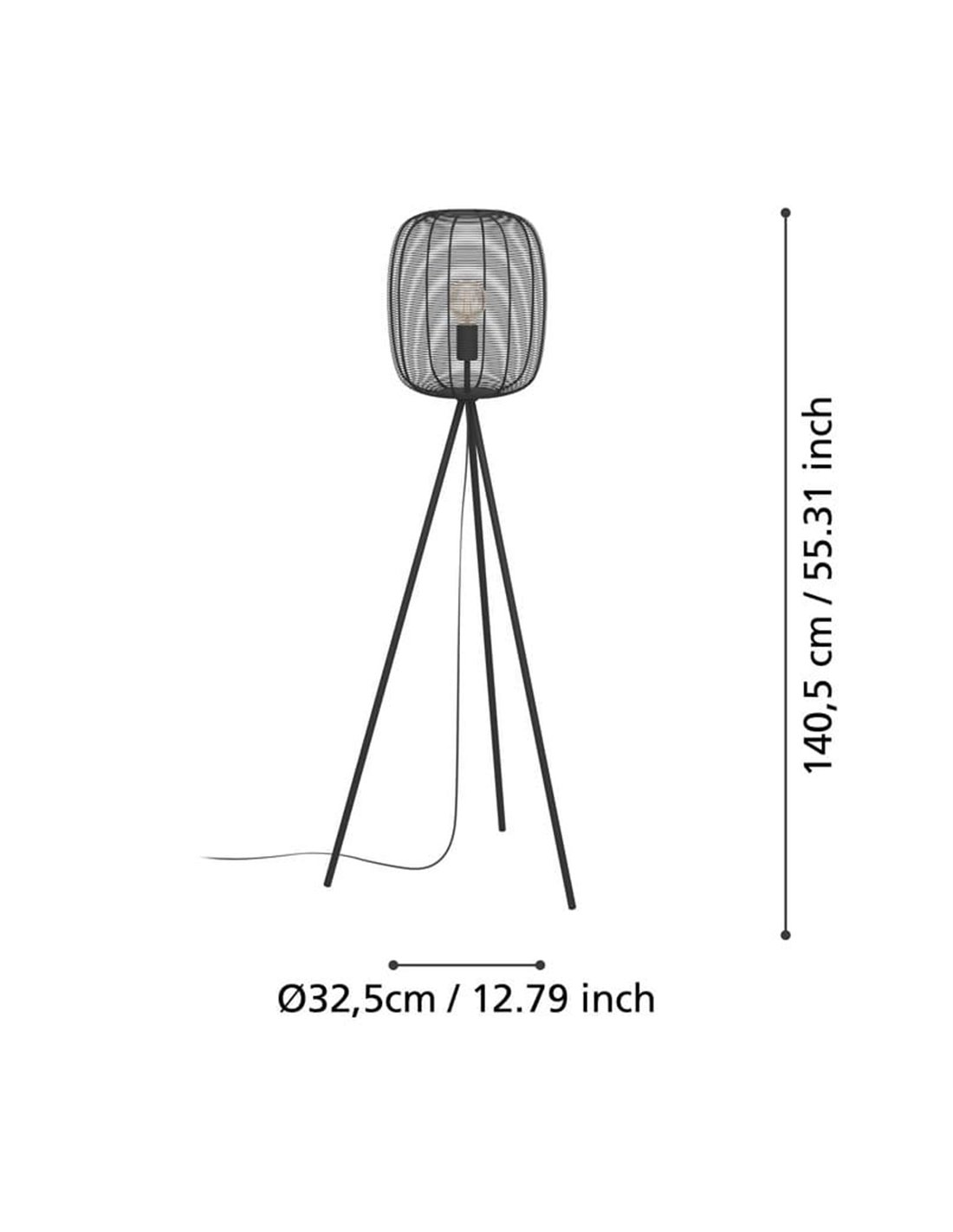 Lampadaire industriel RINROE par Eglo, avec abat-jour cylindrique en fil noir. Compatible avec ampoule E27 (non incluse). Parfait pour ajouter une touche moderne à n'importe quel coin.