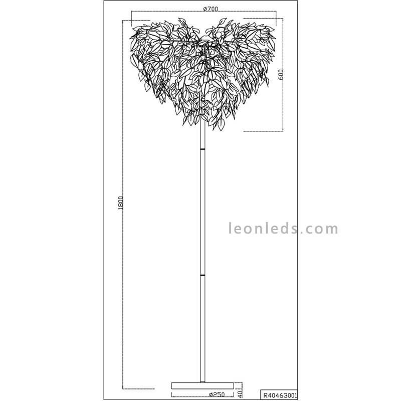 Il est conçu avec un abat-jour de branches et de feuilles blanches et un corps en métal chromé. Pour son fonctionnement, il a besoin de 3 ampoules de type E14 (non incluses) pour fournir une lumière uniforme à travers son écran d'origine. L'abat-jour volumineux a un diamètre de 70 cm et une hauteur totale de 180 cm. Parfait pour décorer les halls, les salons, les réceptions et les chambres.