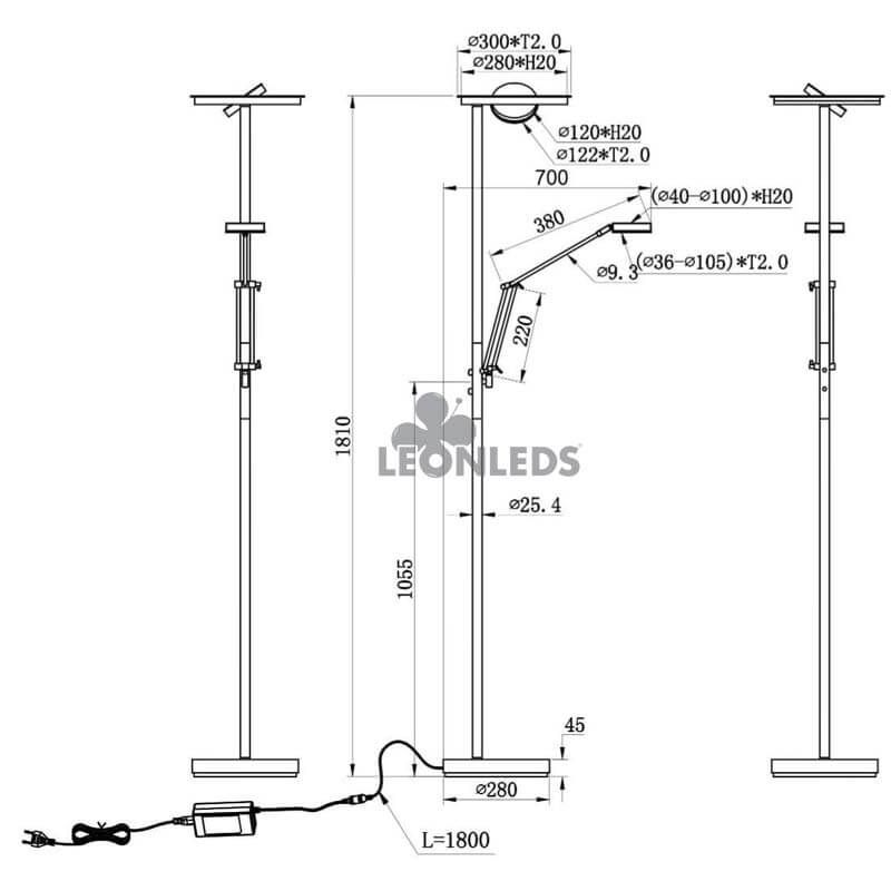 Sa hauteur maximale est de 181 cm et intègre un câble de 1,8 mètre de long. Son utilisation est uniquement recommandée pour l'intérieur car il a une protection IP20.
