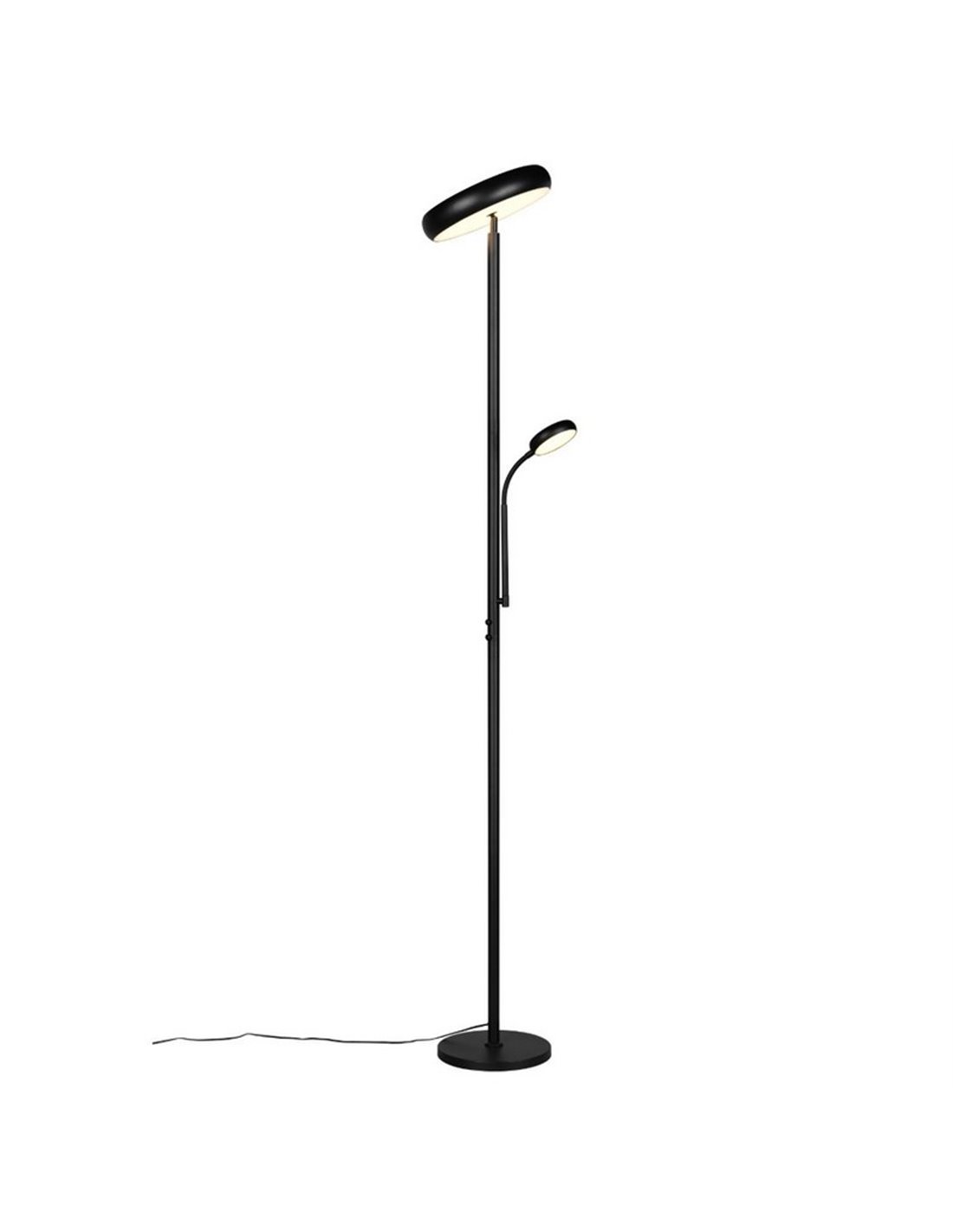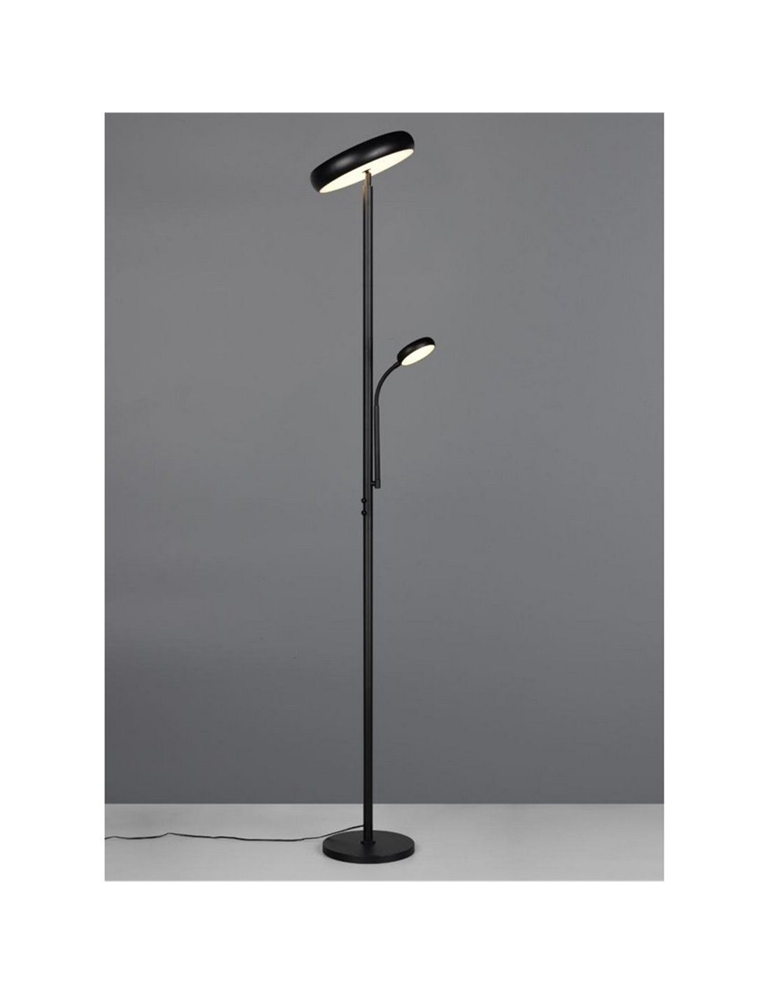 Le lampadaire LED PALERMO, finition noir mat, allie esthétique moderne et fonctionnalité optimale. Son élégant corps en métal et sa double source lumineuse LED permettent de créer une variété d'ambiances, d'un éclairage général chaleureux à une lumière de lecture plus ciblée.