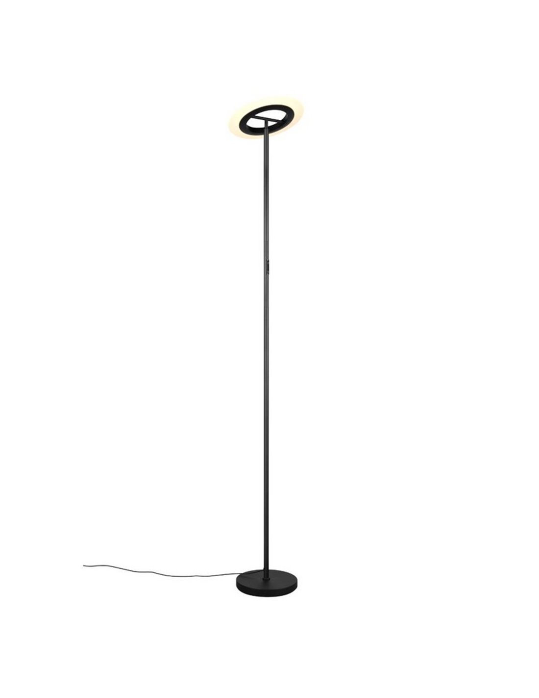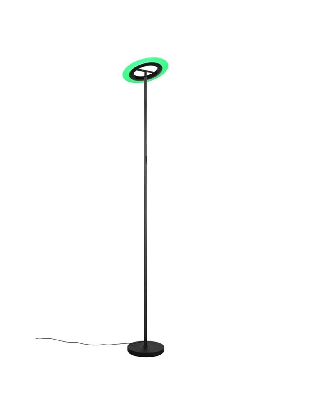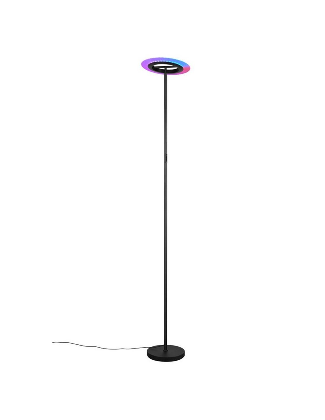Lampadaire LED SAMBA finition noire , d' une puissance de 17 W et d'un flux lumineux de 1 700 lumens . Il offre une lumière variable de 2 700 K à 6 500 K et RGBW avec changement de couleur , ainsi qu'une mémoire , un mode nuit et une télécommande .