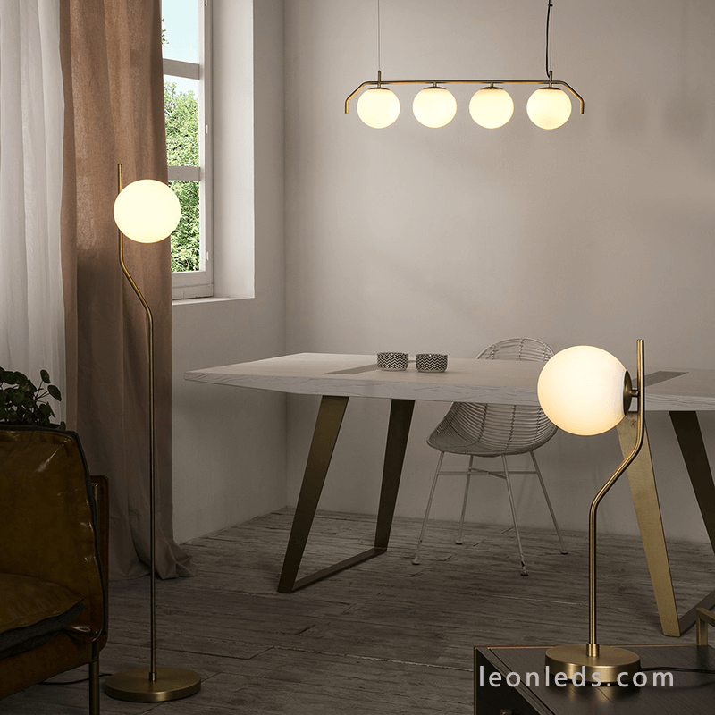 Le lampadaire Maui est conçu pour éclairer des espaces uniques et séduit par un design qui attire beaucoup l'attention. Grâce à son style vintage que l'on retrouve dans une finition dorée ou noire avec un abat-jour sphérique en verre opale blanc, c'est une option à prendre en compte lors de la décoration et de l'éclairage de notre maison. Il a un interrupteur d'alimentation sur le câble.