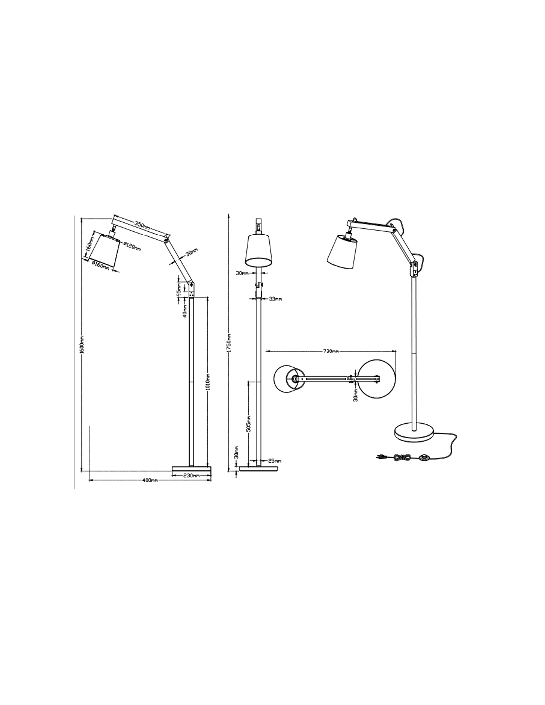 Ce lampadaire en bois et métal possède un pied en métal gris antique qui permet de régler la hauteur de la lampe grâce à l'articulation mobile qu'il comporte. C'est la lampe idéale pour les maisons et les espaces dédiés à la lecture grâce à sa conception sous la forme d'une lampe articulée sur pied qui émet la lumière adéquate et nécessaire pour lire notre livre préféré.