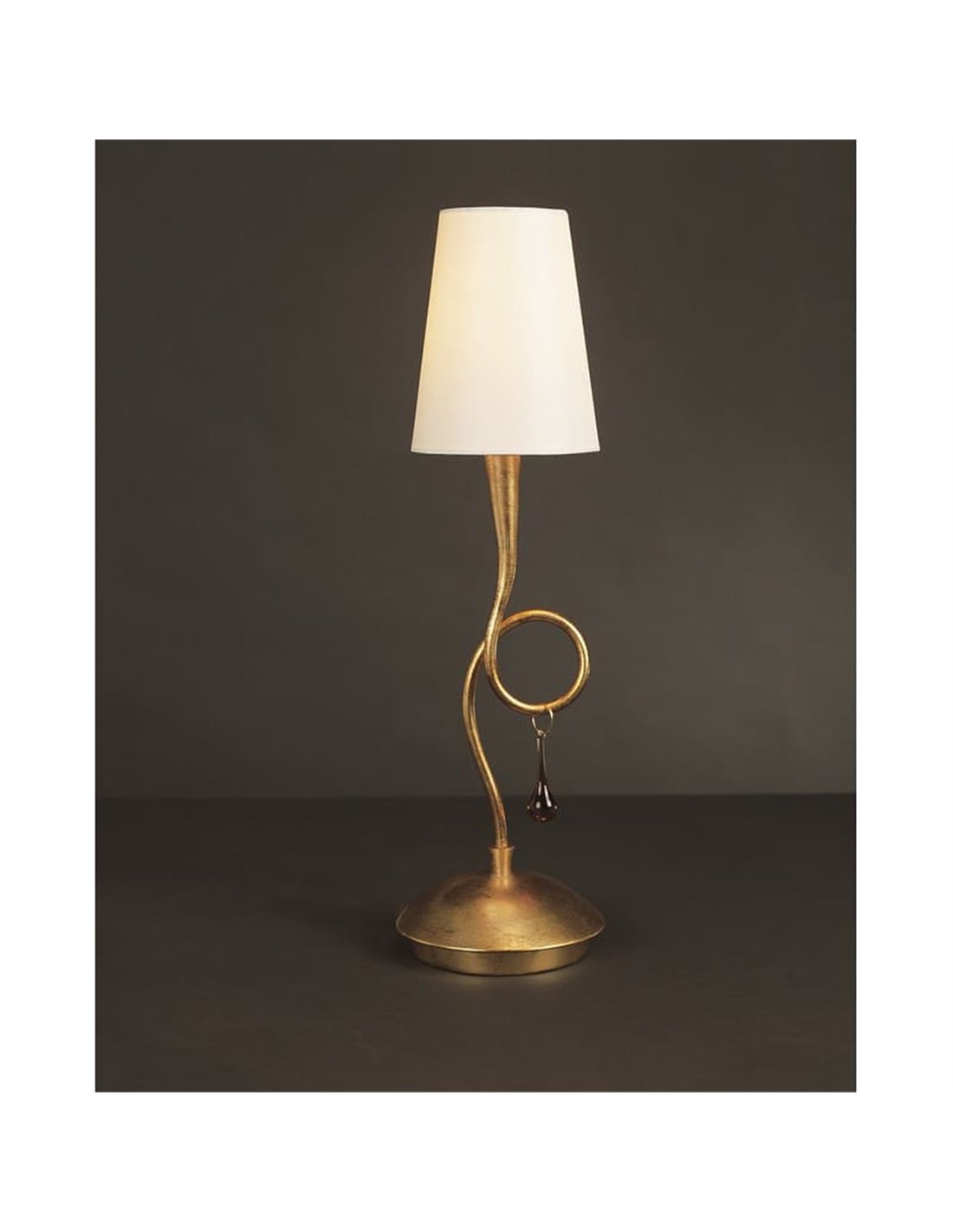 La grande lampe de table dorée de la série Paola a un corps métallique avec une finition dorée, avec 1 abat-jour rond en textile de couleur crème et 1 larme en verre de couleur dorée qui donnent la touche classique qui caractérise cette série. À l'intérieur de l'abat-jour se trouve une douille pour une ampoule LED avec filetage E14, format bougie ou p45, d'une puissance comprise entre 2 et 7W et d'une tonalité Warm Light de 3000K, (Ampoules non incluses).