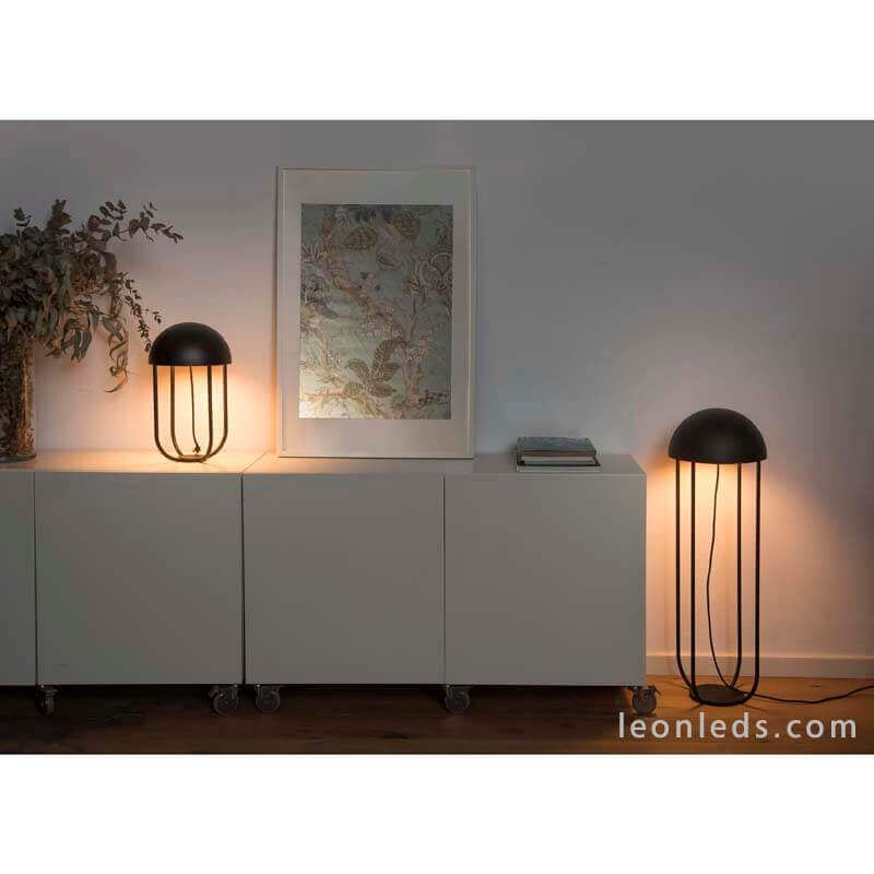 Le lampadaire Jellyfish de Faro Barcelona fait partie d'un ensemble de lampes design en noir avec un intérieur doré. Sa structure veut imiter une méduse ; Dans ce cas, c'est une lampe de table parfaite à placer dans votre salon.
