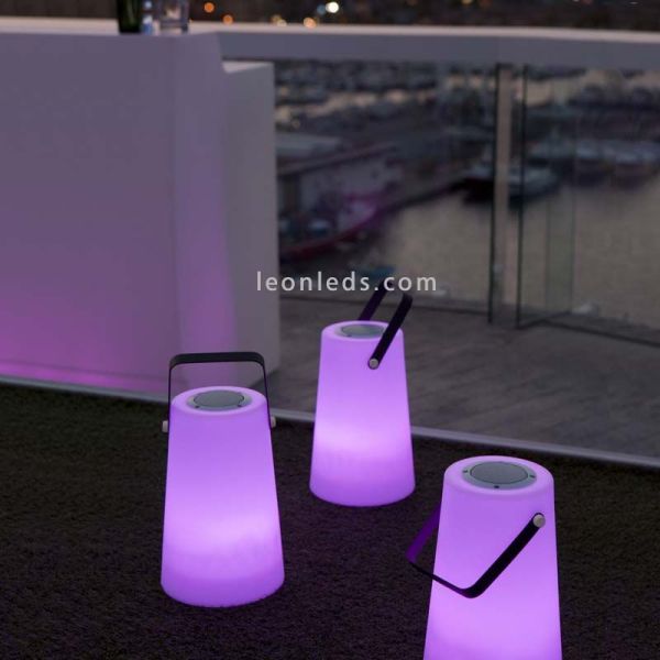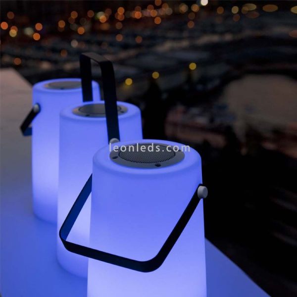 La lampe à poser LED Nómada play outdoor speaker de la firme espagnole New Garden vous accompagnera dans toutes vos aventures outdoor. Il a un corps en polyéthylène léger et résistant avec une poignée noire qui vous permettra de le transporter n'importe où, en plus de fournir un éclairage multicolore, il comprend un haut-parleur pour que vous puissiez écouter votre musique préférée en toute occasion.
