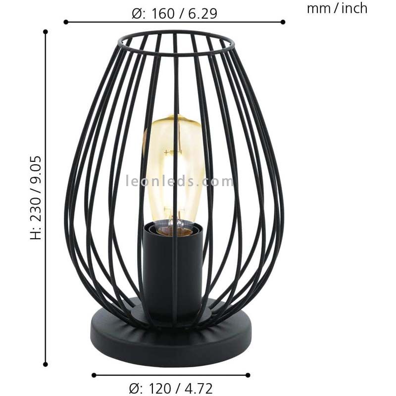 Lampe de table en acier noir de la collection Newtown par Eglo Iluminación. Il dispose d'un écran avec des fils noirs au format conique qui laissent apparaître une douille noire pour 1 ampoule E27 (non fournie). C'est une lampe de style industriel qui se marie parfaitement avec des décorations de ce style.