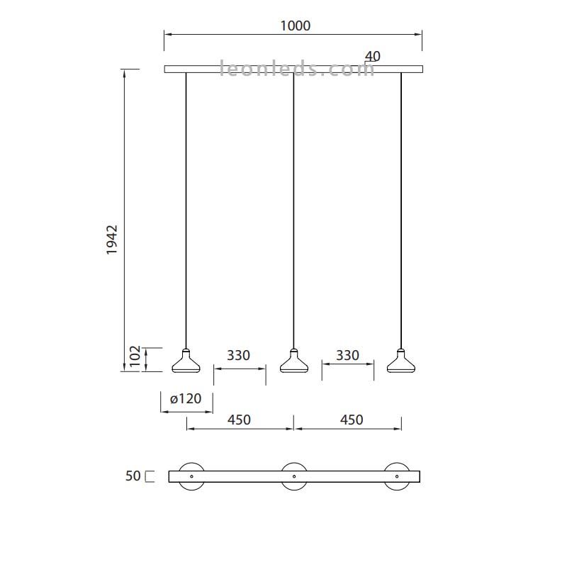 Plafonnier LED avec 3 écrans Orion, un concept et un design différent qui dispose de 3 écrans avec technologie LED qui offre une puissance totale de 24W, une intensité lumineuse de 1770Lm (équivalent à 120W des anciens) et une tonalité lumineuse chaude de 3000K. Ce plafonnier LED Orion a un support rectangulaire d'une longueur de 120 cm, un diamètre de chaque écran LED de 25 cm et une hauteur réglable individuellement de chaque écran jusqu'à 202,4 cm. Il est fait d'aluminium et d'acrylique avec une structure de toit allongée noire, quelques câbles qui maintiennent les écrans noirs et quelques écrans noirs et laiton (cuir) avec un design unique, la lumière LED sort de l'intérieur sans devenir gênante, dans la suite photo vous pouvez le voir plus en détail.