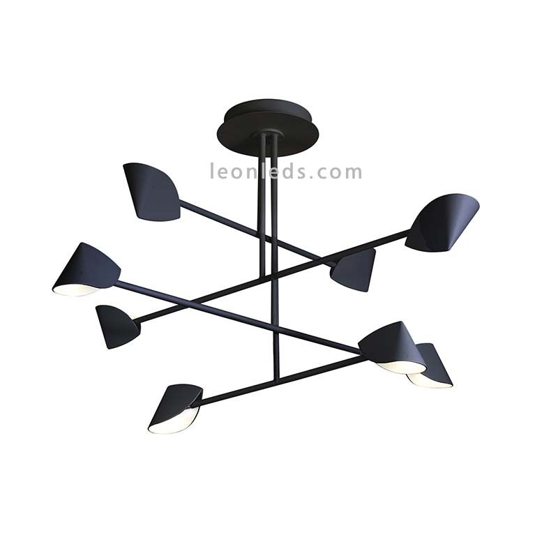 Le plafonnier Mantra Iluminación 8L Capuccina LED noir est conçu avec un corps composé de barres métalliques qui se croisent et incorporent 8 abat-jour en forme de capot avec technologie LED incluse. Le support rond du plafond et la structure du plafonnier sont en aluminium et en fer noir, c'est donc une lampe faite de matériaux résistants et de qualité supérieure.