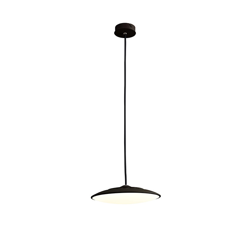 La suspension circulaire noire a une distance entre la base et le diffuseur de 1 500 mm dans le modèle de 460 mm de diamètre et le modèle de 250 mm. Vous avez le choix entre 4 modèles différents selon leur puissance 16W ou 50W ou leur tonalité lumineuse 3000k ou 4000k.
