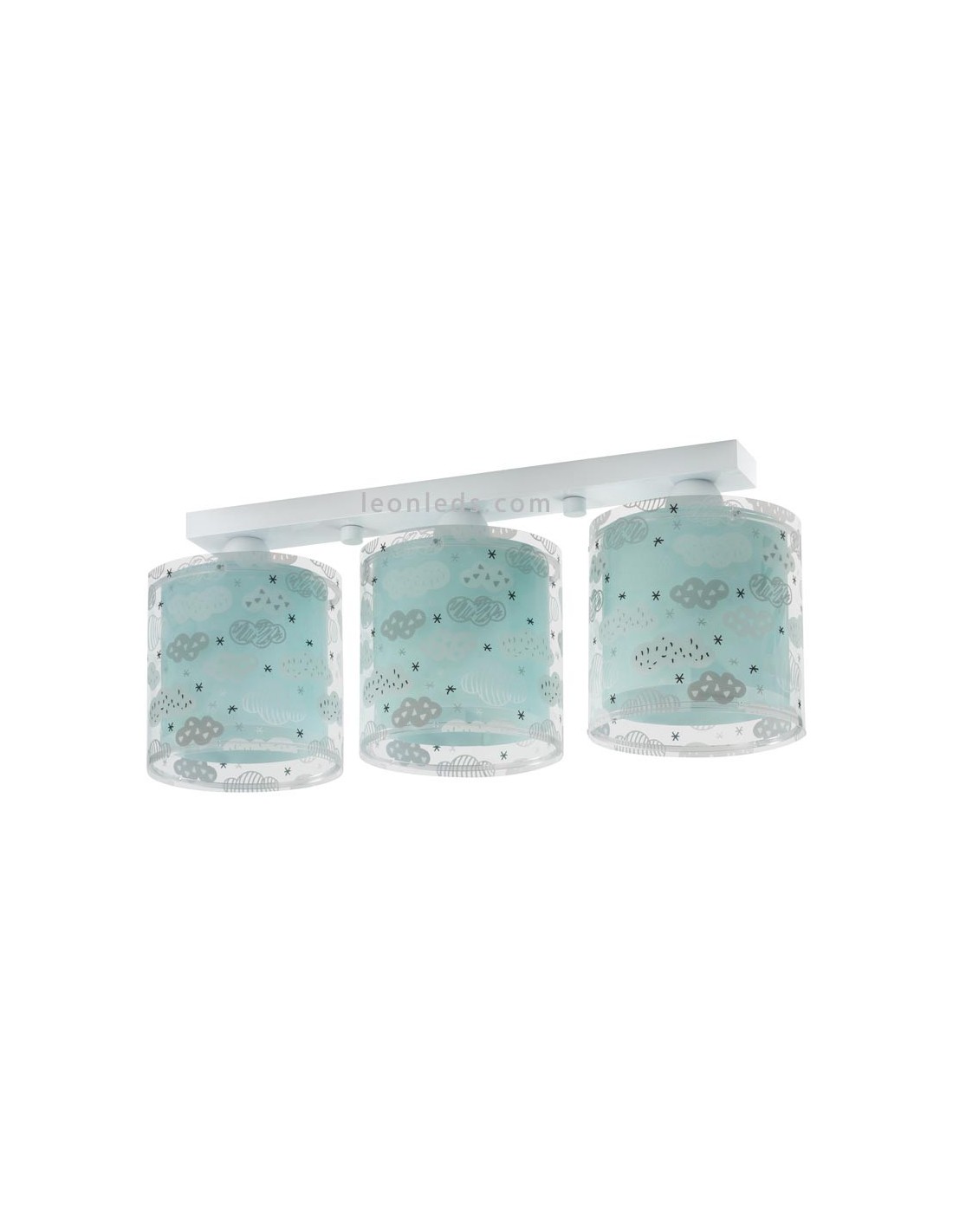 Plafonnier pour enfants rond vert avec 3 abat-jour avec des nuages de formes différentes série Clouds 3XE27.