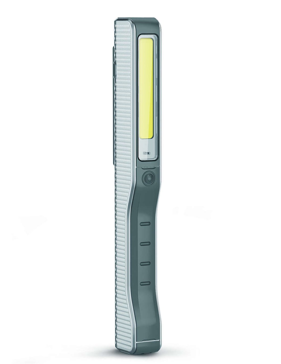 Éclairage puissant et de haute qualité (180 Lm) avec Color+ pour voir les vraies couleurs ( IRC 95 ) | Boîtier en aluminium résistant aux chocs, aux produits chimiques et à l'eau ( IK07/IP54 ) | Mode d'avertissement avec lumière rouge clignotante | Clip rotatif à 80° avec aimant pour une utilisation mains libres.