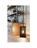 Lampe de table BRADFORD 1 par Eglo, au design lanterne classique en métal noir et verre transparent. Compatible avec les ampoules E27 (non incluses). Parfait pour éclairer n’importe quelle pièce avec une touche vintage.