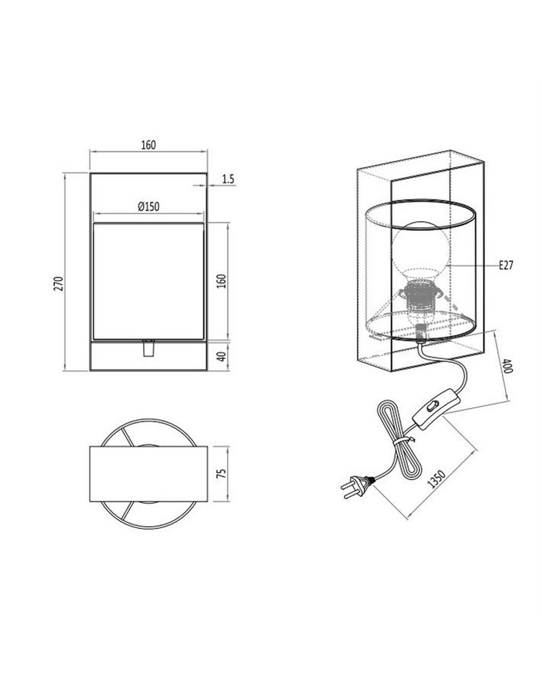 - Compatible avec les ampoules E27 : Puissance maximale de 10W (ampoule non incluse).