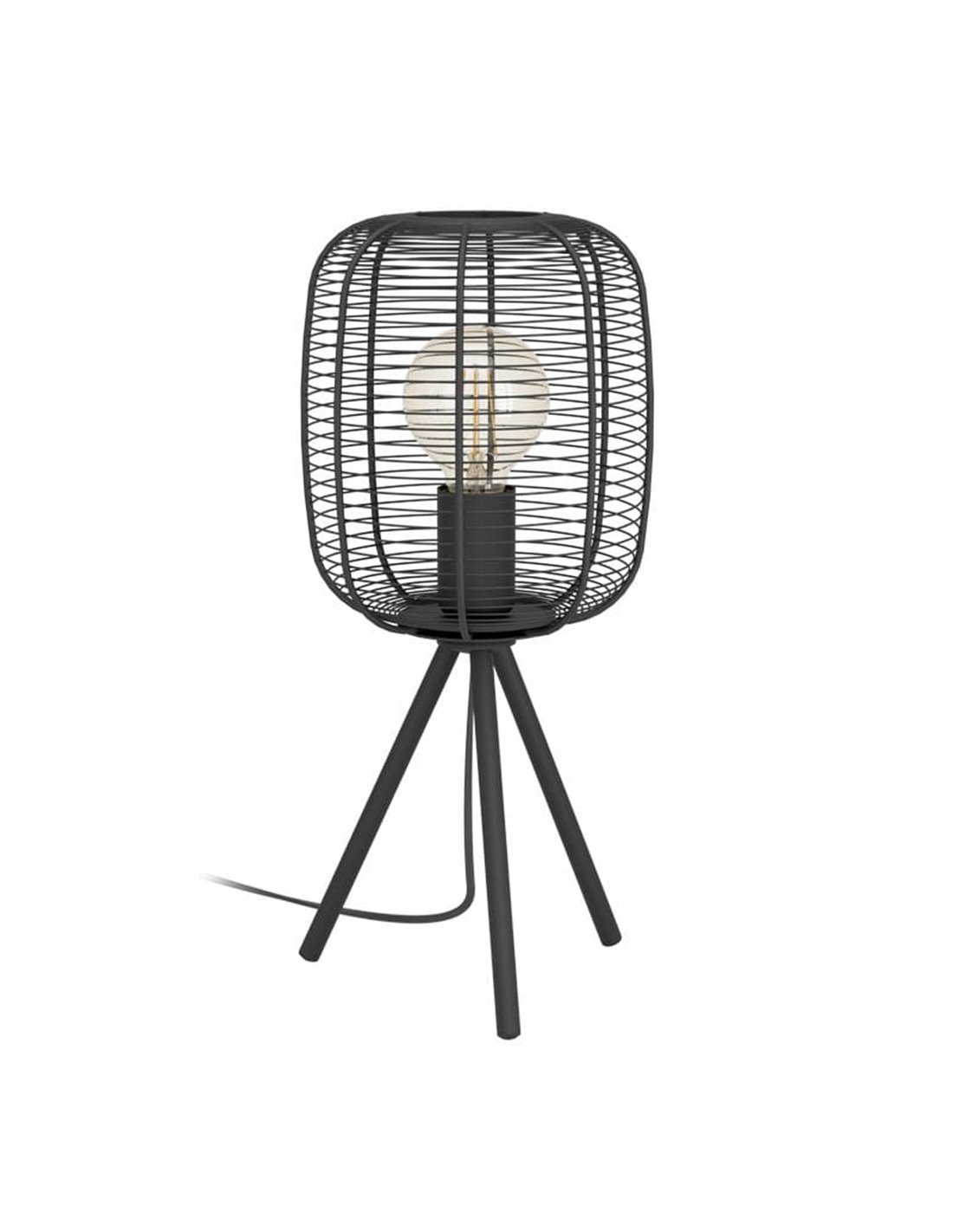 Lampe de table RINROE de Eglo, avec abat-jour cylindrique en fil noir et base à trois pieds en métal noir. Compatible avec ampoule E27 (non incluse). Idéal pour ajouter une touche moderne aux bureaux et tables d'appoint.