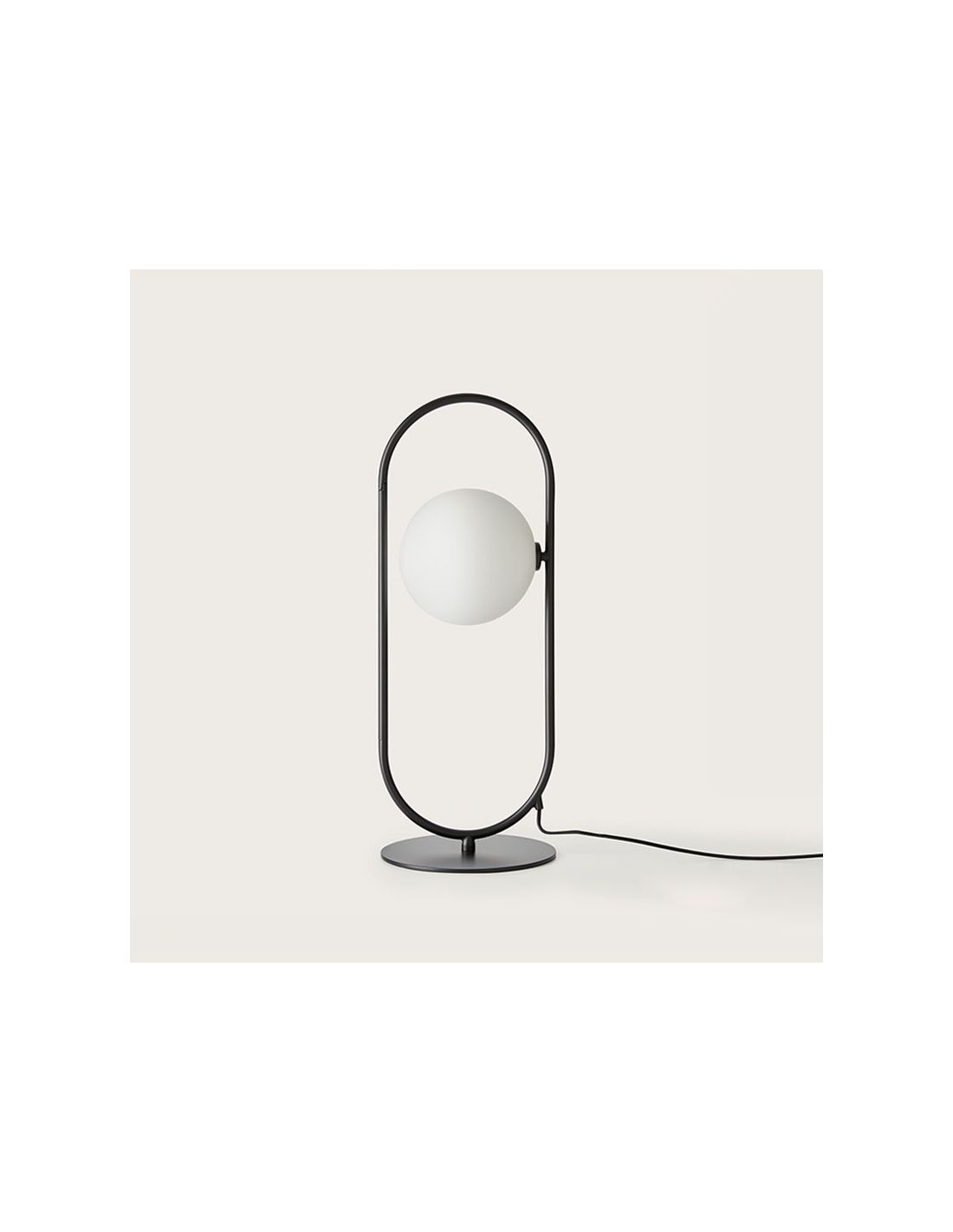 La lampe de table Abbaque Elle laisse tout le monde impressionné par sa structure ovale et son abat-jour en verre qui semble flotter au centre. Ce design unique est idéal pour ceux qui souhaitent inclure un lampe design dans la décoration de votre maison. Que votre style soit vintage , rétro ou industrielle, cette lampe à poser s'adaptera parfaitement aux styles de décoration les plus modernes.