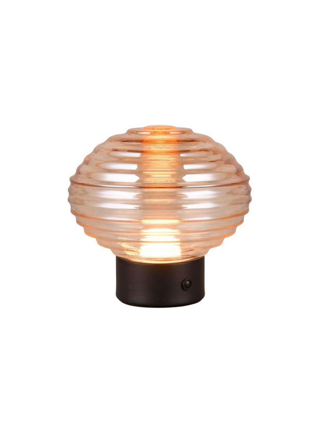 EARL Lampe de table LED en verre cannelé ambre lumière chaude 3000K IP20 rechargeable par USB