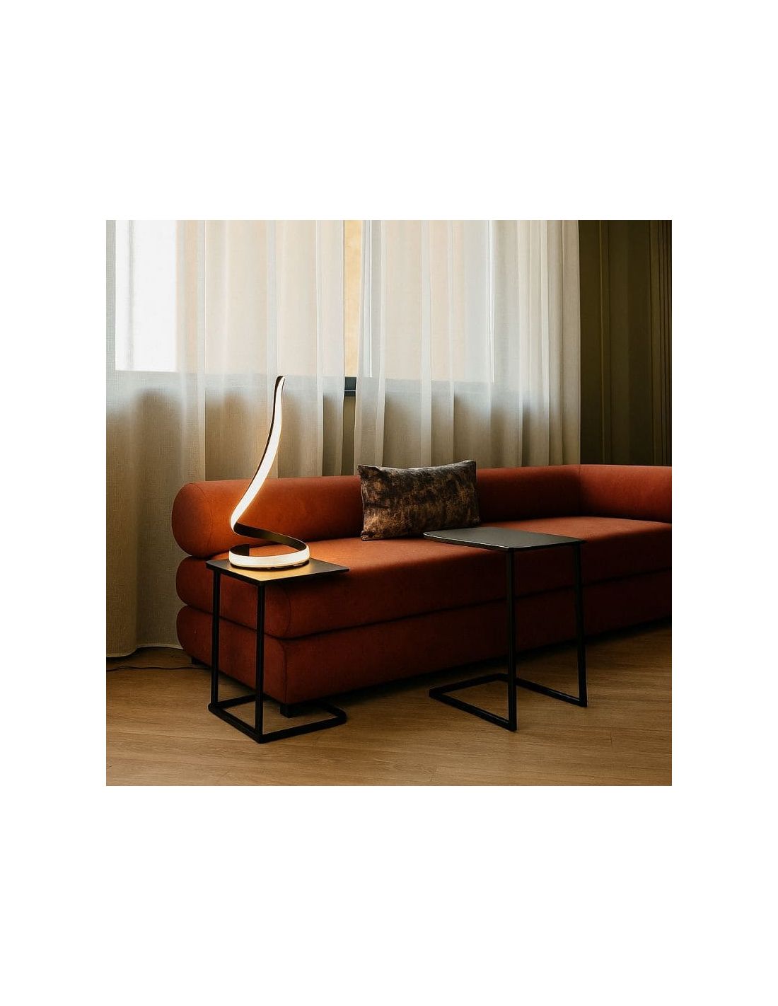 La lampe de table LED Mantra NUR, en fer forgé, est un luminaire élégant qui apporte style et chaleur à n'importe quelle pièce. Avec son design incurvé et ses matériaux de haute qualité, elle allie praticité et esthétique dans un format compact, idéal pour les intérieurs modernes.