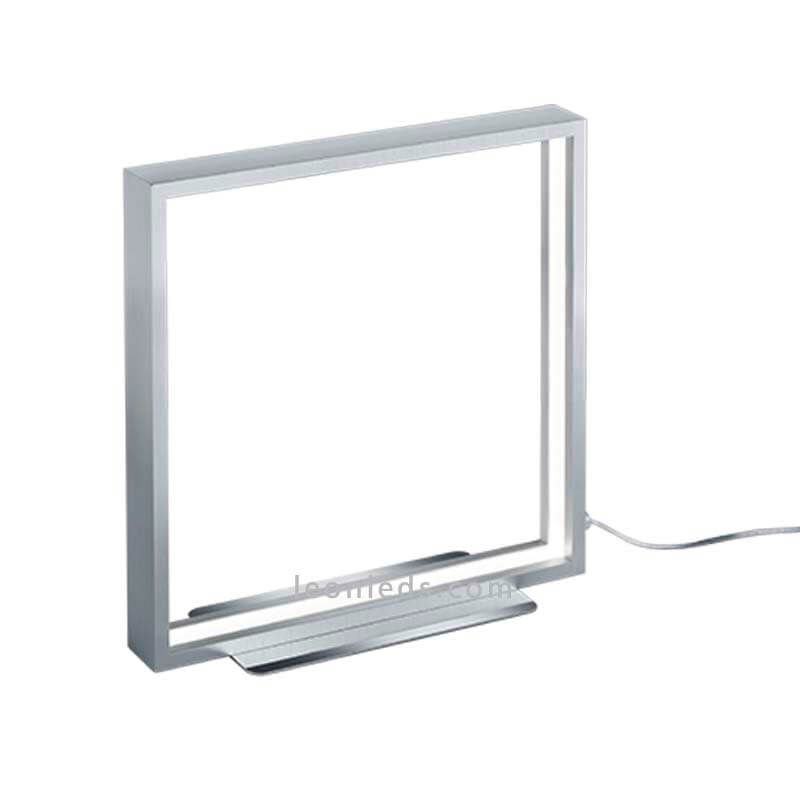 Lampe de table LED moderne de forme carrée de la série Azur avec une puissance de 9W, une intensité lumineuse de 800Lm et une tonalité de lumière chaude de 3000K, une structure en aluminium de couleur Aluminium Poli avec câble de 1,5 mètre et interrupteur sur le fil.