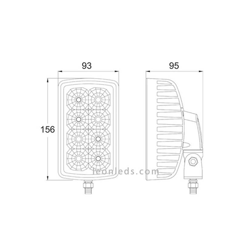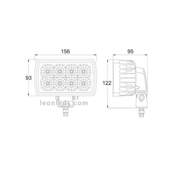 Lampe de travail rectangulaire à LED avec 8 LED de 5 W, un total de 40 W et une intensité lumineuse de 3 700 Lm. Les dimensions sont visibles sur l'une des photos. Si vous recherchez une lampe de travail LED rectangulaire avec un support rotatif et qui peut être installée horizontalement et verticalement.