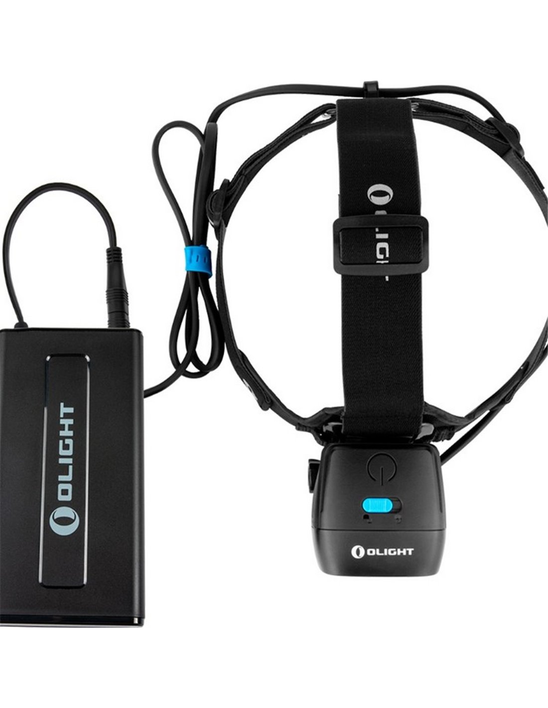Lampe frontale LED Olight H67 XXL avec une puissance maximale de 12 000 lumens , une portée allant jusqu'à 120 mètres et une autonomie allant jusqu'à 38 heures . Fonctionnant avec huit batteries lithium 18650 de 100 W , elle offre quatre modes d'éclairage. Dimensions : 74 mm de long. Poids : 770 grammes avec batterie. Protection IPX4 et résistance aux chutes d'un mètre.
