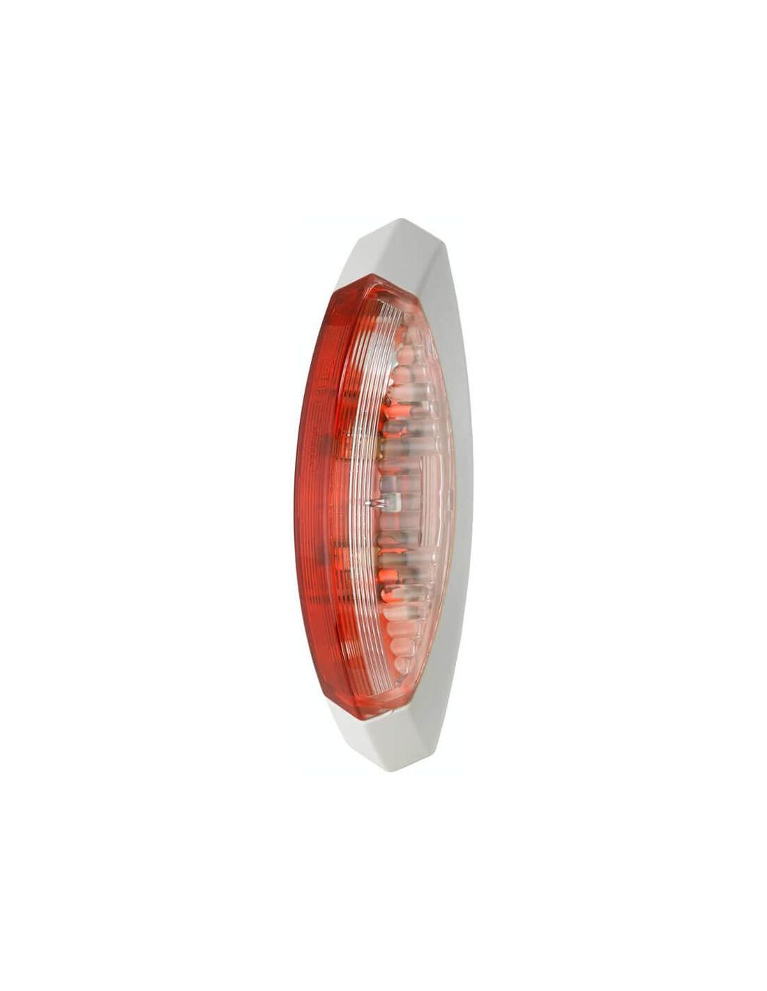 Lampe Galibo pour caravane de Hella 2XS 008 479-081 avec un socle blanc, ce modèle de feu d'encombrement comprend des Ampoules Halogènes C5W et est valable pour 12V, l'abat-jour est blanc d'un côté et rouge de l'autre.