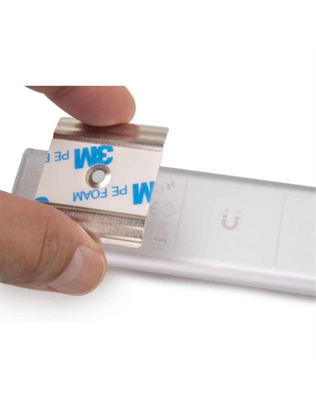 - Installation sans outil : Il se fixe à l'aide de bases métalliques adhésives à fixation magnétique , permettant de le retirer facilement pour le recharger.
